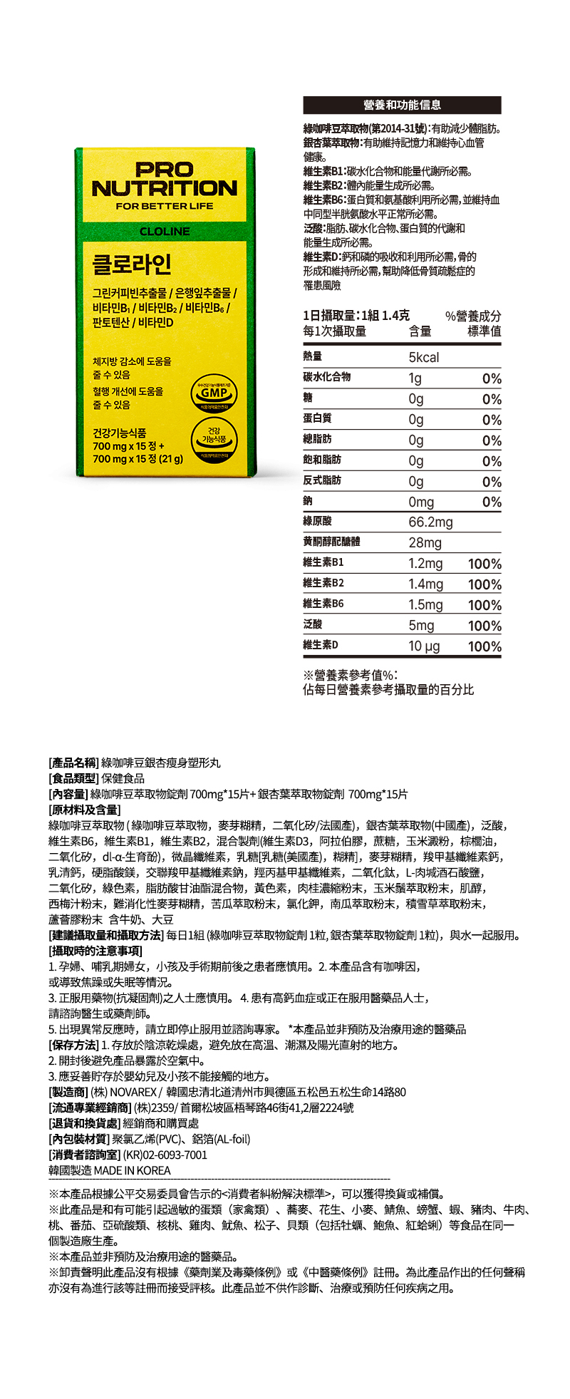 Cloline Pro Nutrition綠咖啡豆銀杏瘦身塑形丸