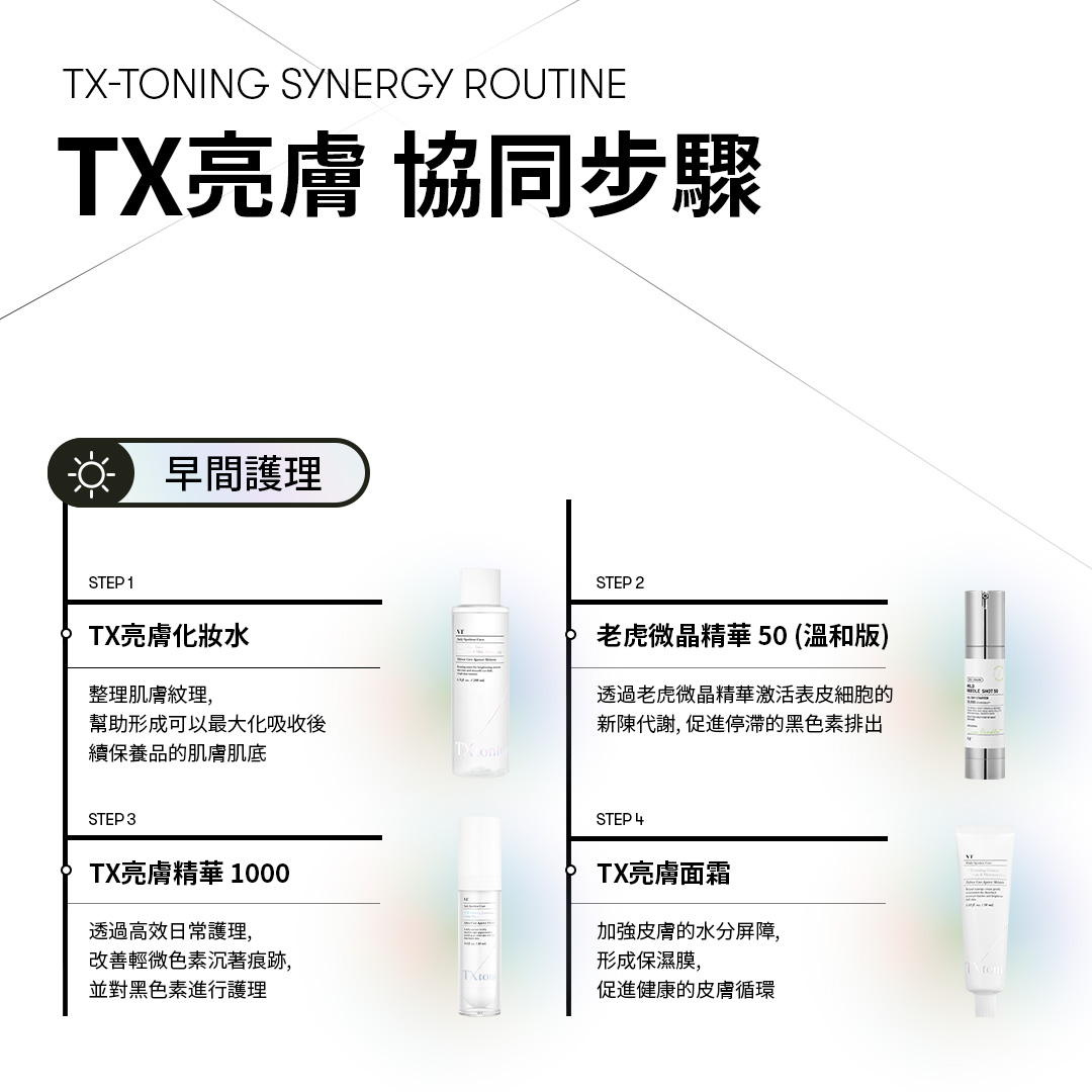 🟡 TX亮膚精華 2000: 170,000ppm 高含量配方採用純度達99.9%的高效成分配方